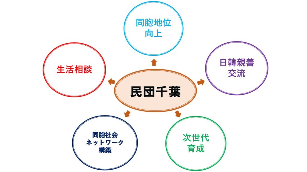 「在日本大韓民国民団千葉県地方本部」は、1947年に設立された韓国政府が認めた公認団体です。千葉県に住む在日韓国人・韓国籍の方が快適に生活できるよう様々なサポートを行いながら韓国と日本地域社会との架け橋の役割を果たしています。在日同胞の生活の助けになることを目的とした施策と、祖国と日本を繋ぐ親善活動に重点を置いて活動を行っています。